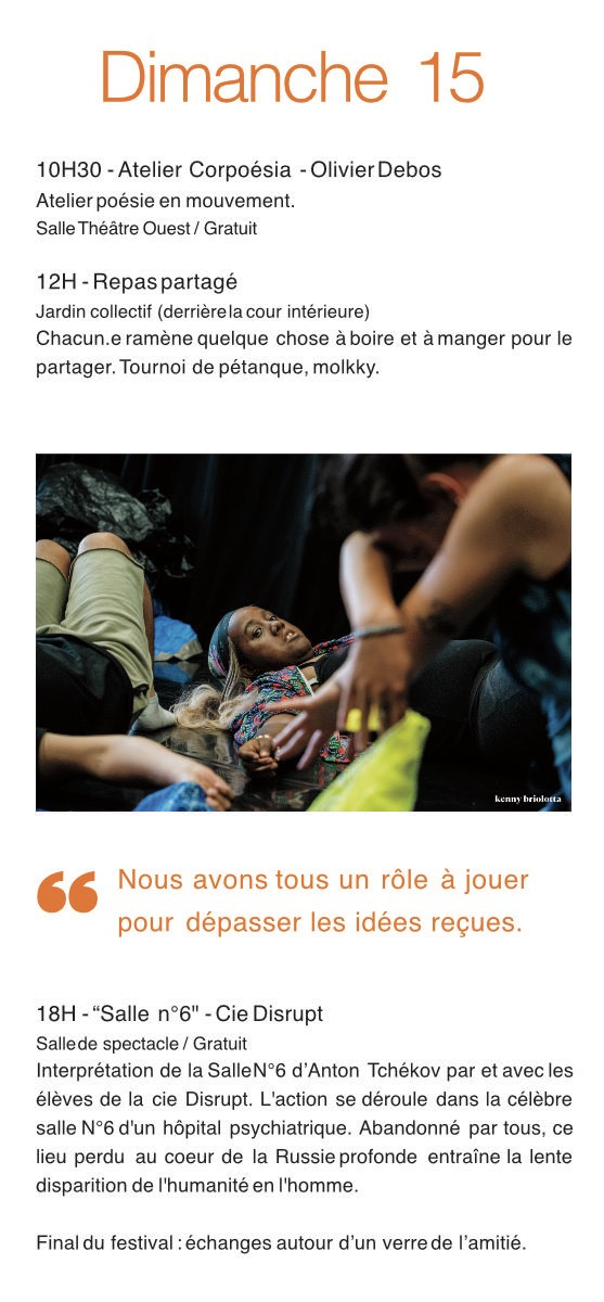 Atelier A – Salle de spectacle. Avec Alice Basset, Basile Deneire, Aline de Soyza Lima, Sylviane Montredon, Michaël Ribot. Mise en perspective au plateau d’un fait réel. Cinq comédiens se confrontent en abordant la question essentielle de la place de l’art dans notre société.